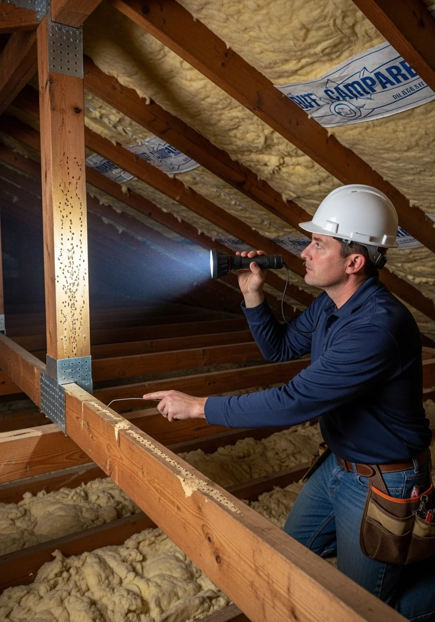 We use advanced termite inspection tools and professional inspection equipment to detect termite activity, subterranean termites, drywood termites, and other wood-destroying insects. Our licensed termite inspectors ensure no mud tubes, damaged wood, or hollow wood goes unnoticed during a thorough home inspection.